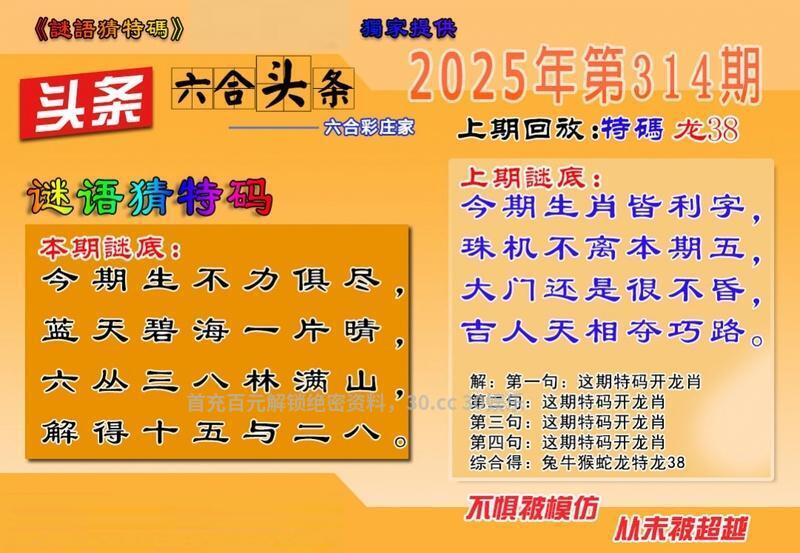 | 314期:平特一肖★龙龙龙★开:龙26中 | |||